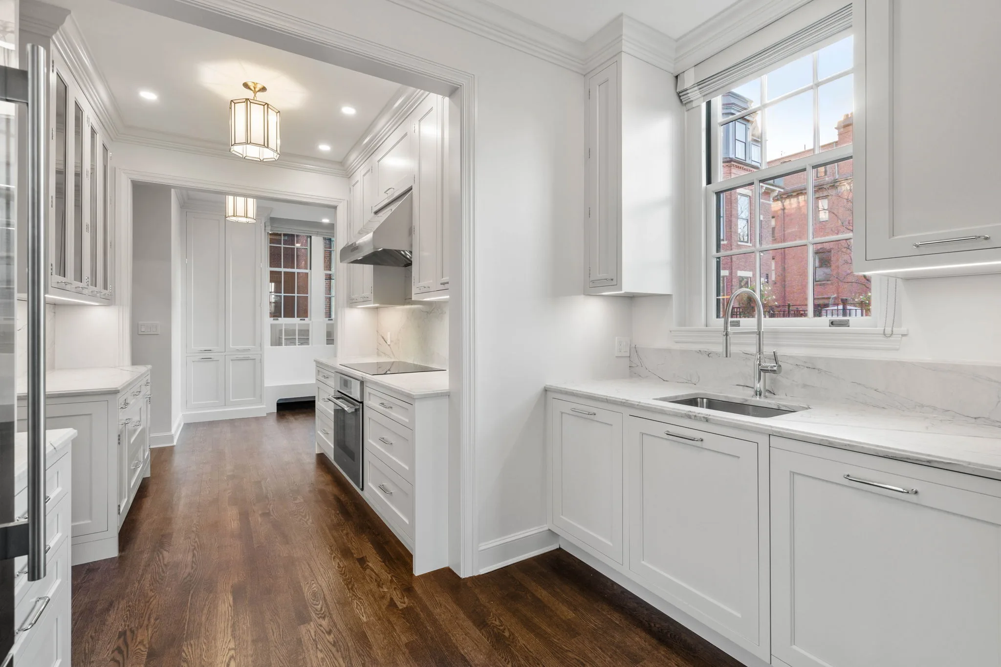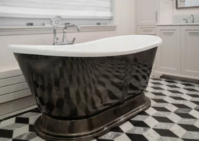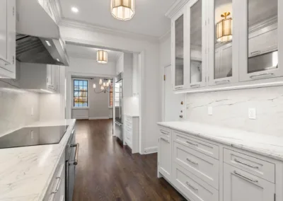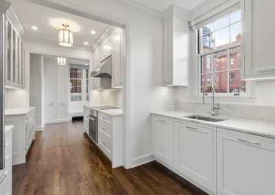 This spacious and elegant 4,000-square-foot, three-bedroom masterpiece features soaring ceilings, rich period details, and sweeping views of Boston’s iconic Back Bay. Our clients wanted to renovate the home, without sacrificing any of the original character. We carefully restored the original crown molding, installed picture molding in the color drenched moody brown library, revived the aging hardwood floor and much more. The result is a sophisticated blend of old and new — a timeless, modernized Back Bay Beauty.